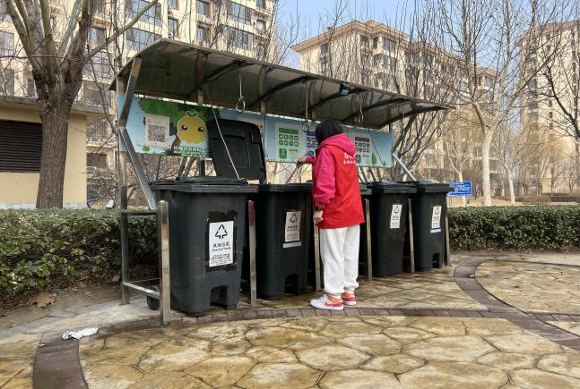 天房公司、天房市政及天房物业公司志愿者在路口进行文明引导,清理道路绿篱中的白色垃圾和雨水篦子内的堵塞垃圾。