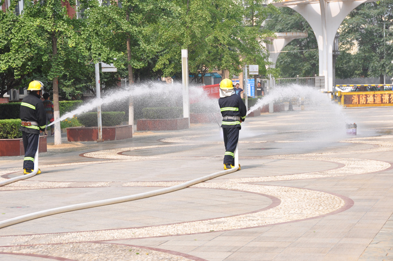 本次活动共分公共安全知识宣传讲解、火灾及防汛模拟现场应急处置演练、居民参与救灾体验三个环节。由30名大龙物业职工进行现场实战演练,200余名周边社区居民现场观摩演练。